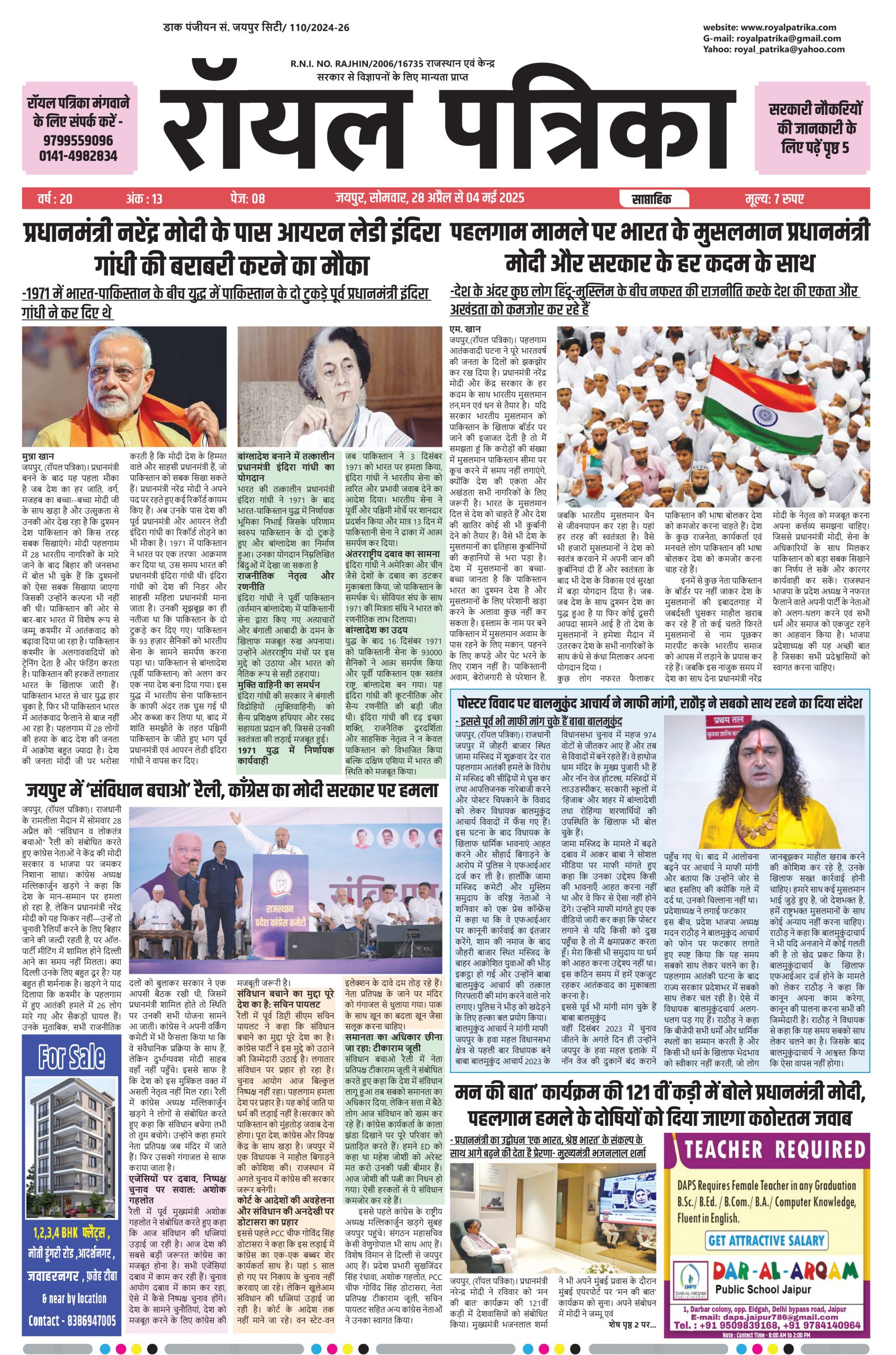 28 अप्रैल 2025 साप्ताहिक रॉयल पत्रिका