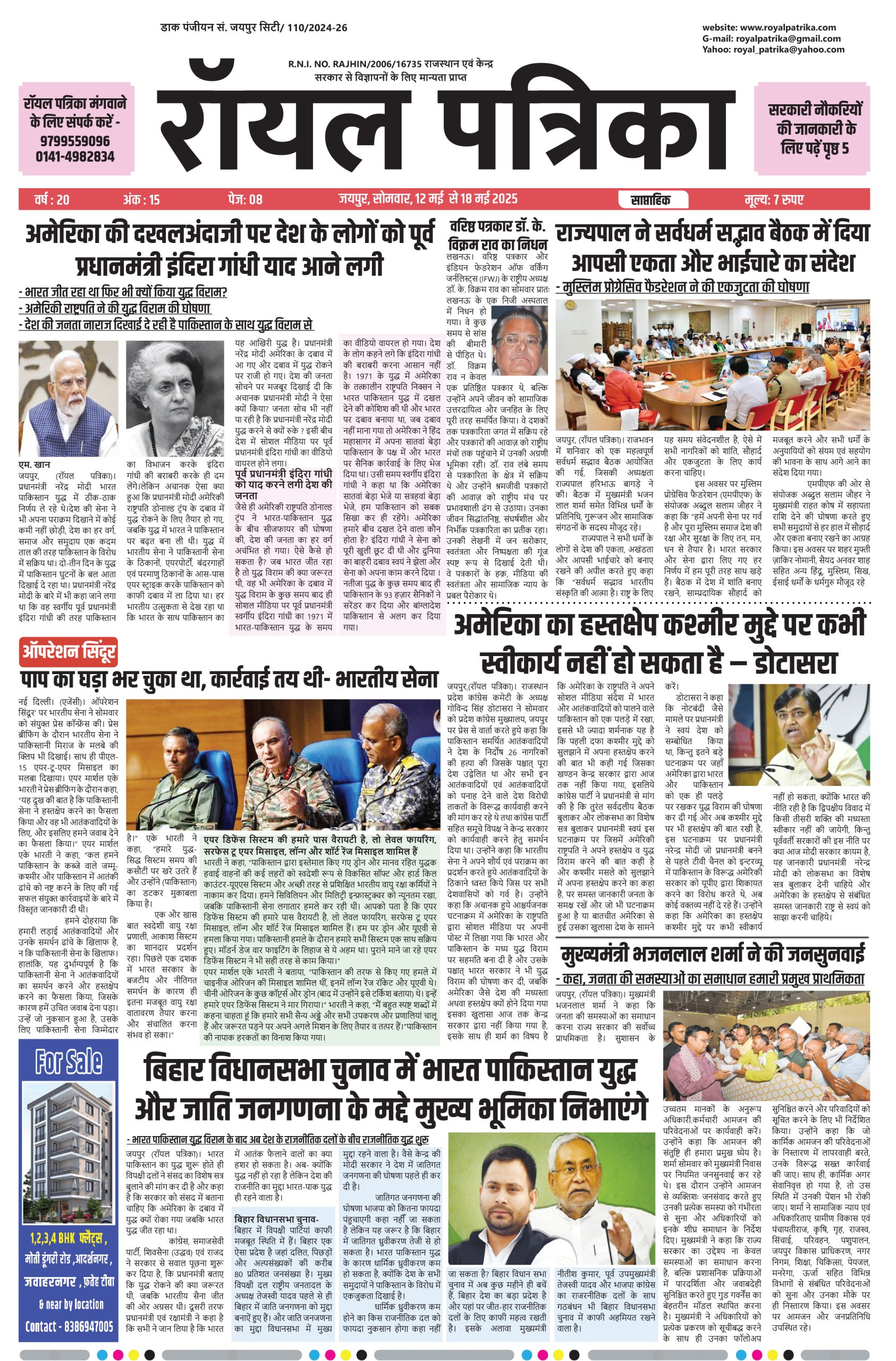 12 मई 2025 साप्ताहिक रॉयल पत्रिका