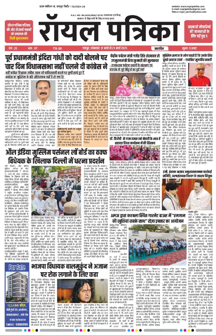 दैनिक रॉयल पत्रिका 07 फरवरी 2026