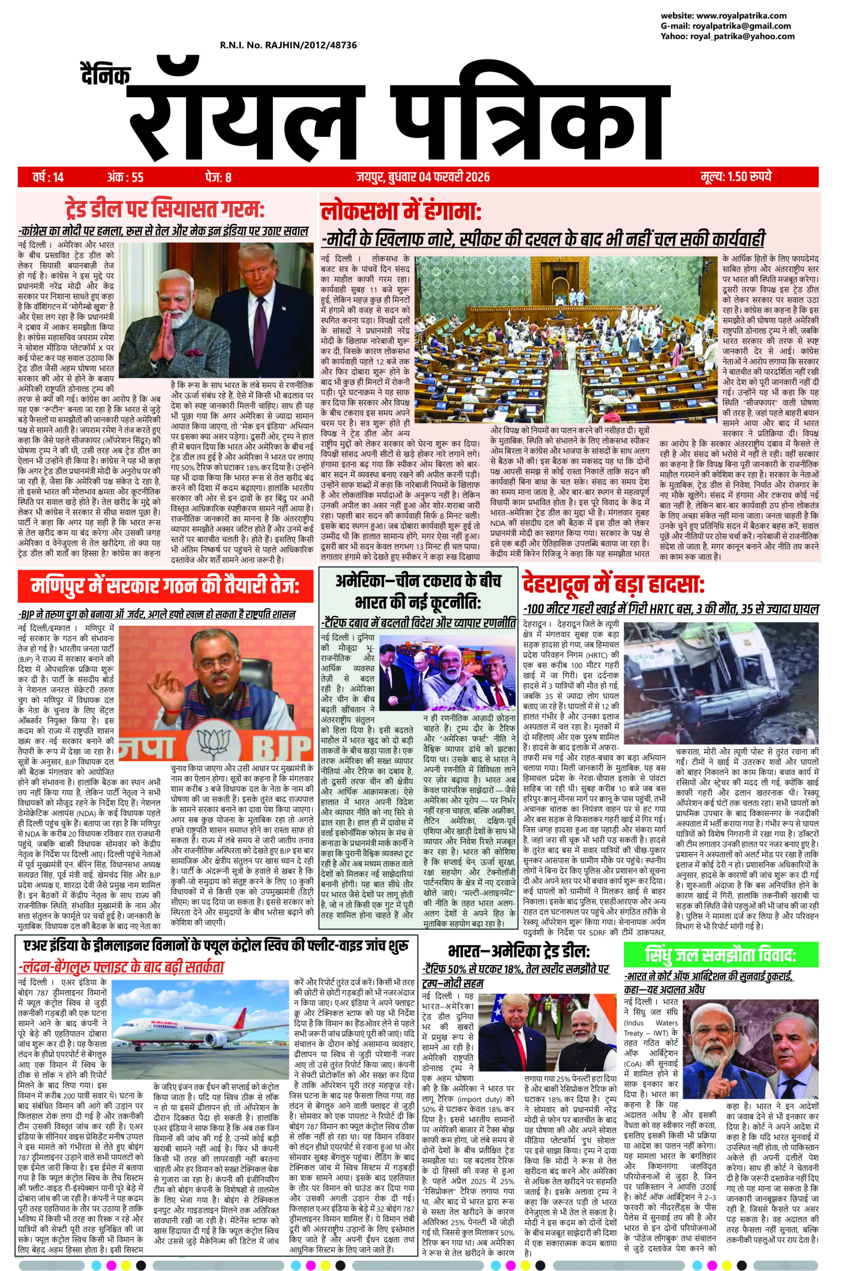 दैनिक रॉयल पत्रिका 06 फरवरी 2026