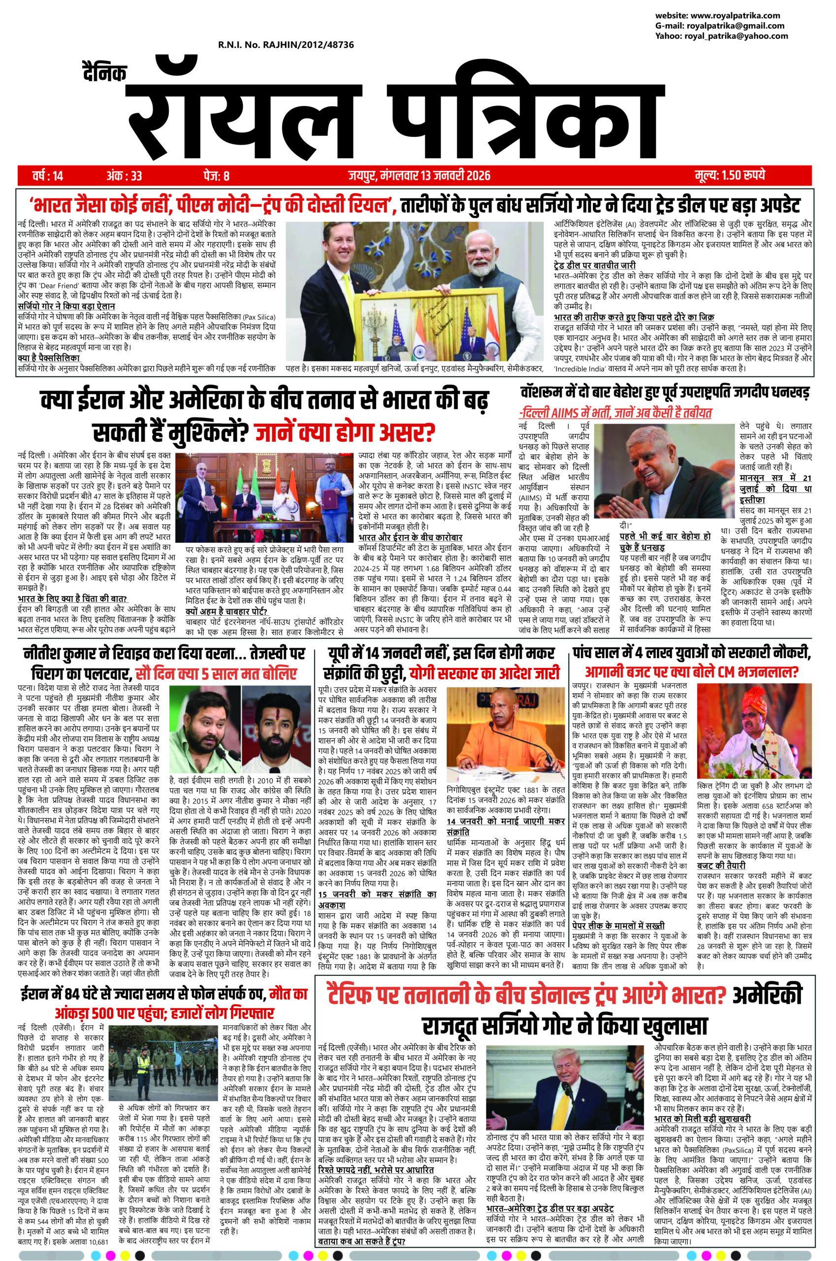 दैनिक रॉयल पत्रिका 14 जनवरी 2026