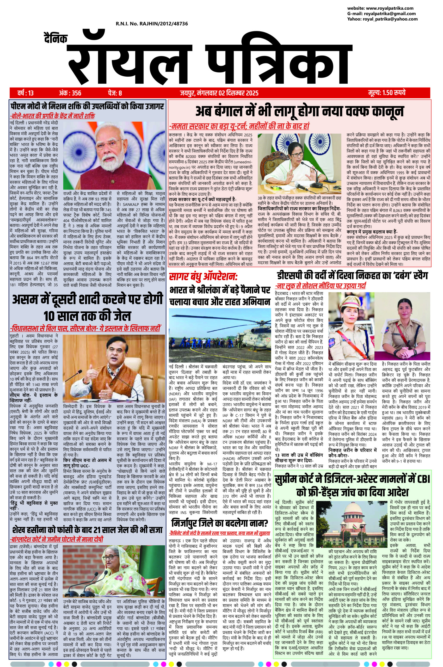 दैनिक रॉयल पत्रिका 02 दिसम्बर 2025