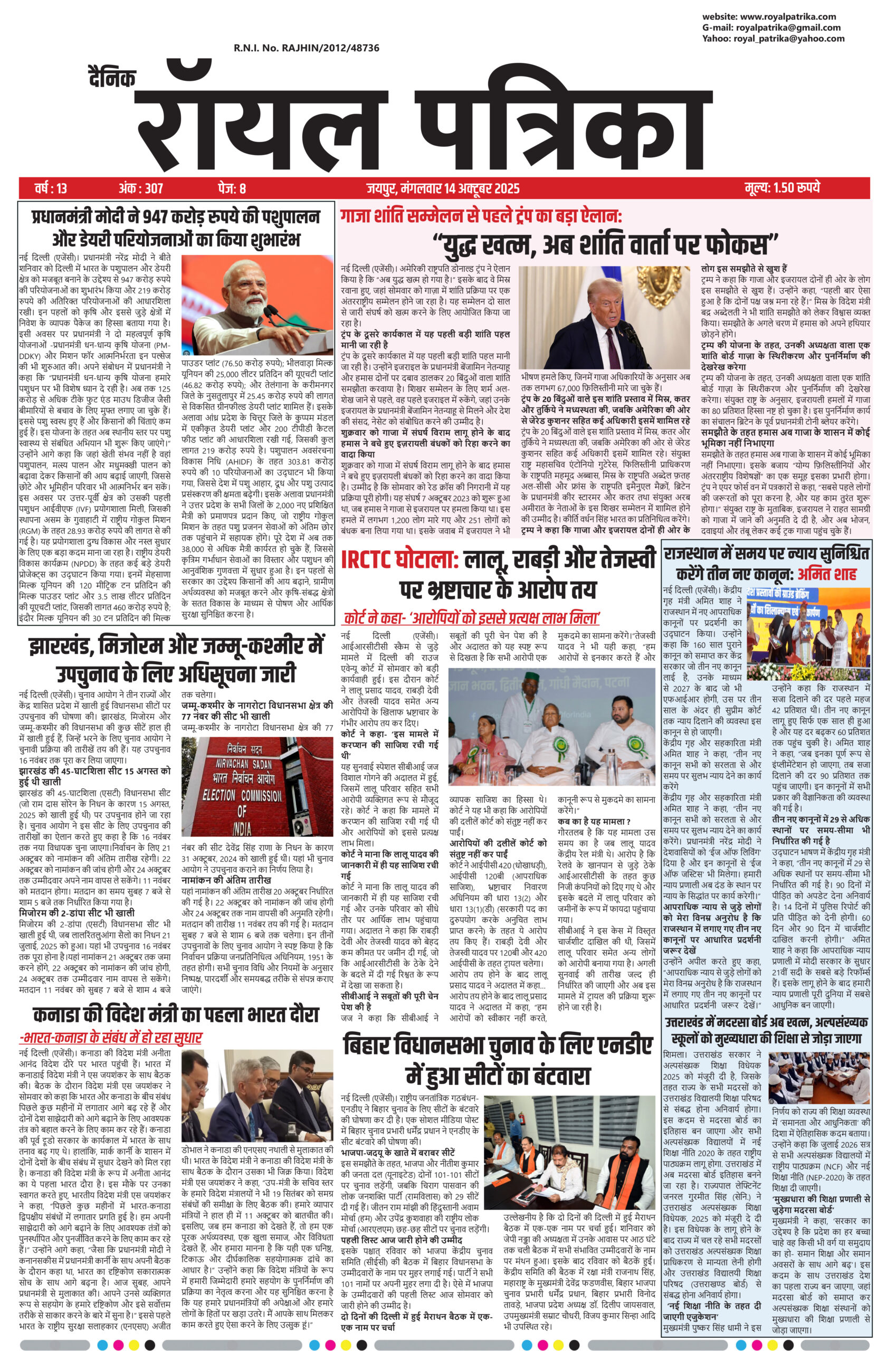 दैनिक रॉयल पत्रिका 14 अक्टूबर 2025