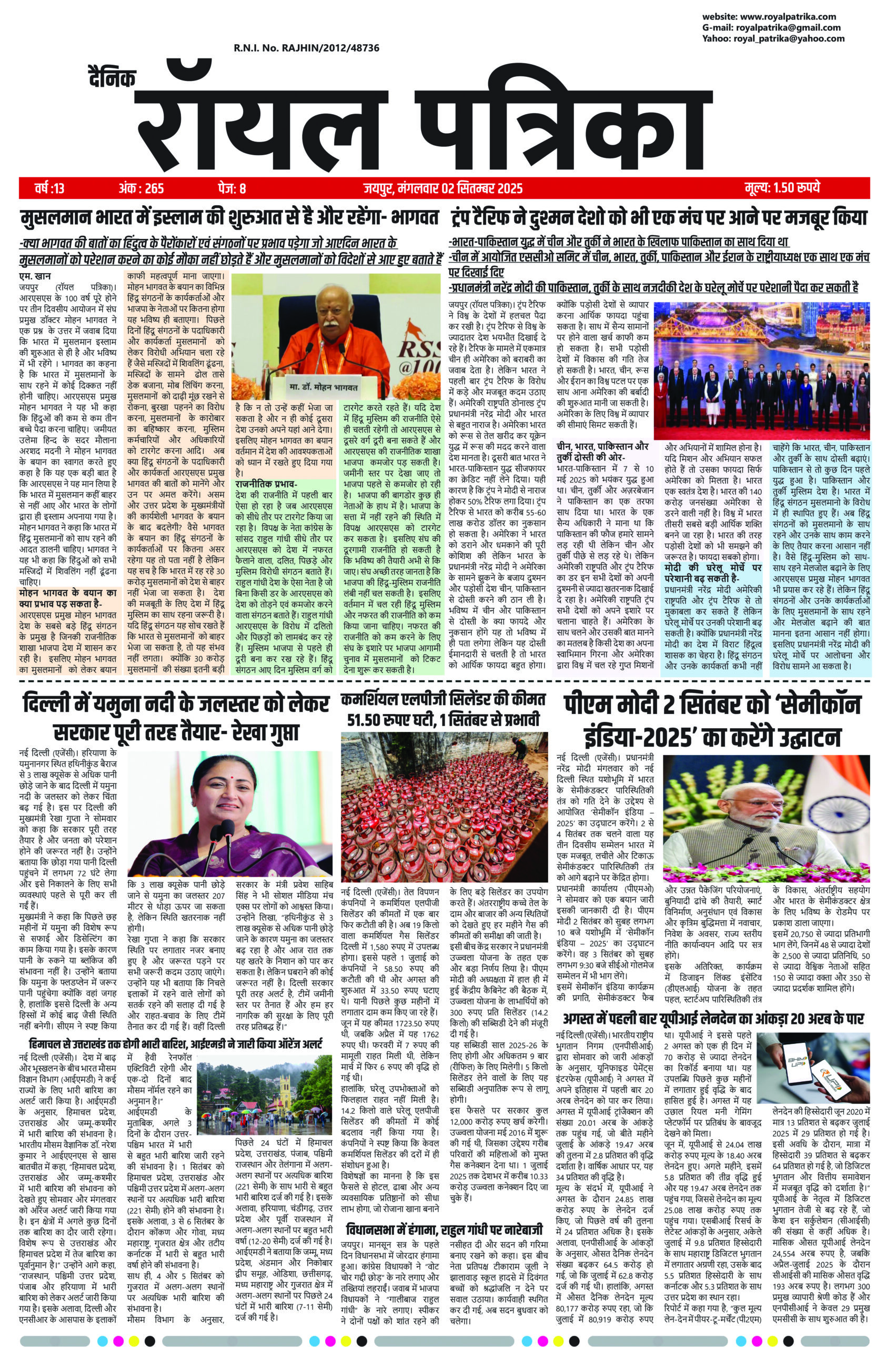 दैनिक रॉयल पत्रिका 02 सितम्बर 2025