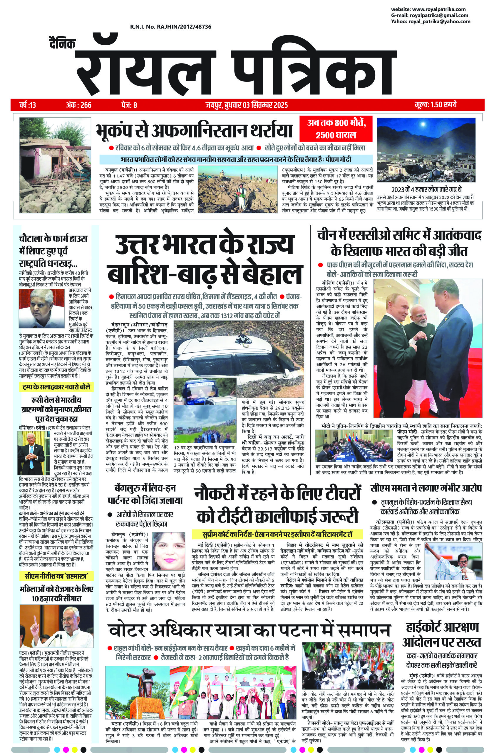 दैनिक रॉयल पत्रिका 03 सितम्बर 2025