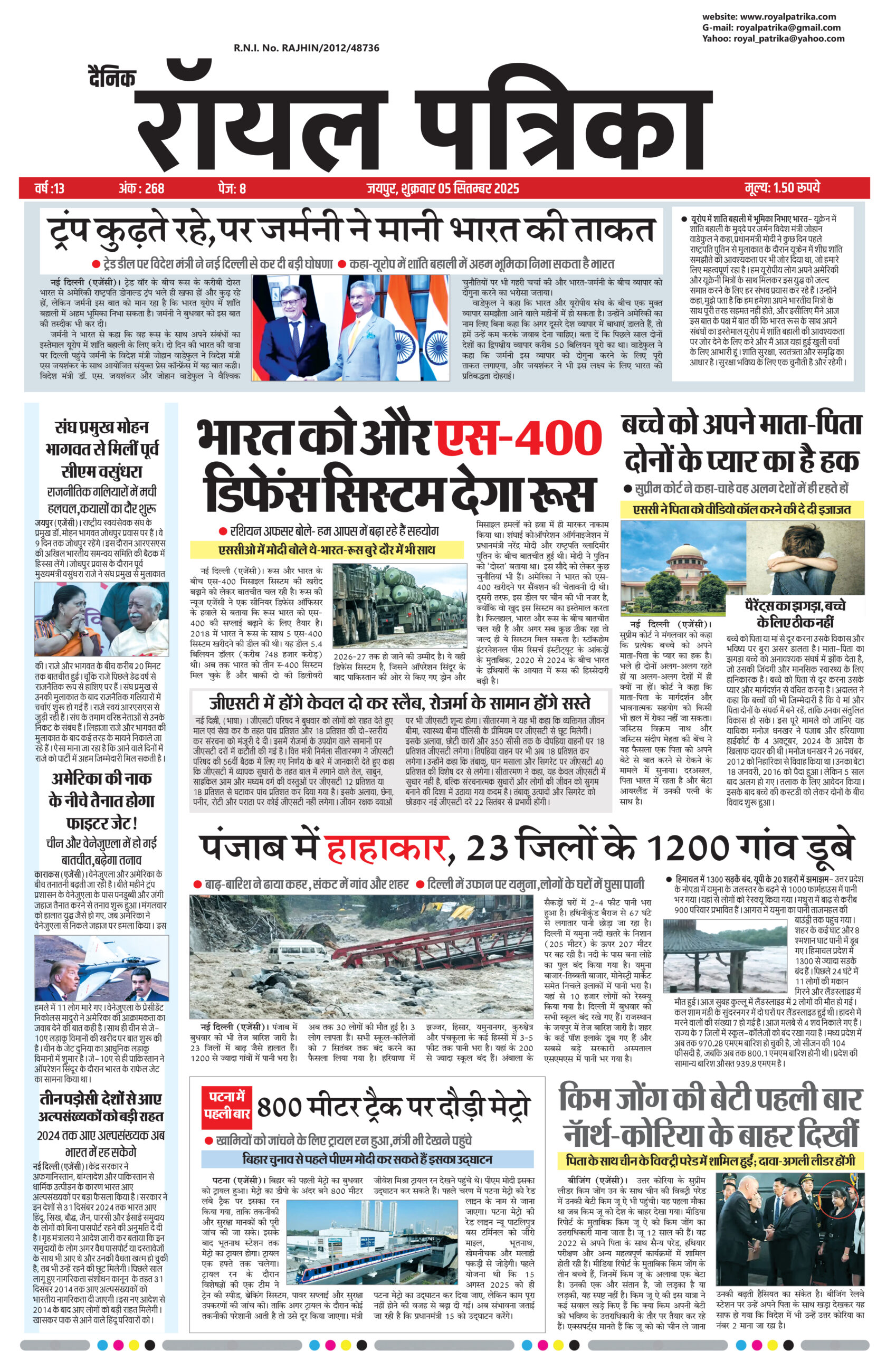 दैनिक रॉयल पत्रिका 05 सितम्बर 2025