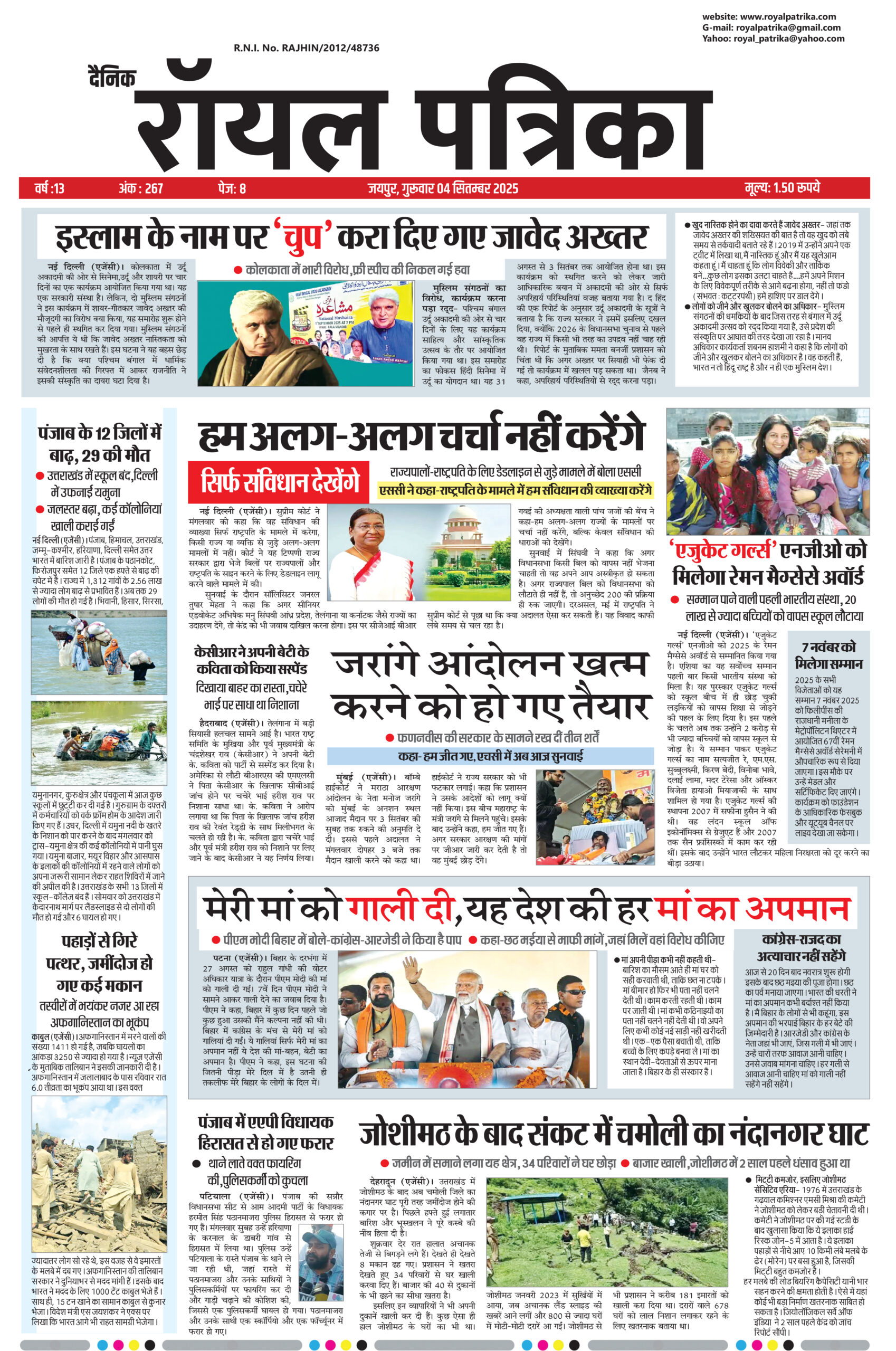दैनिक रॉयल पत्रिका 04 सितम्बर 2025