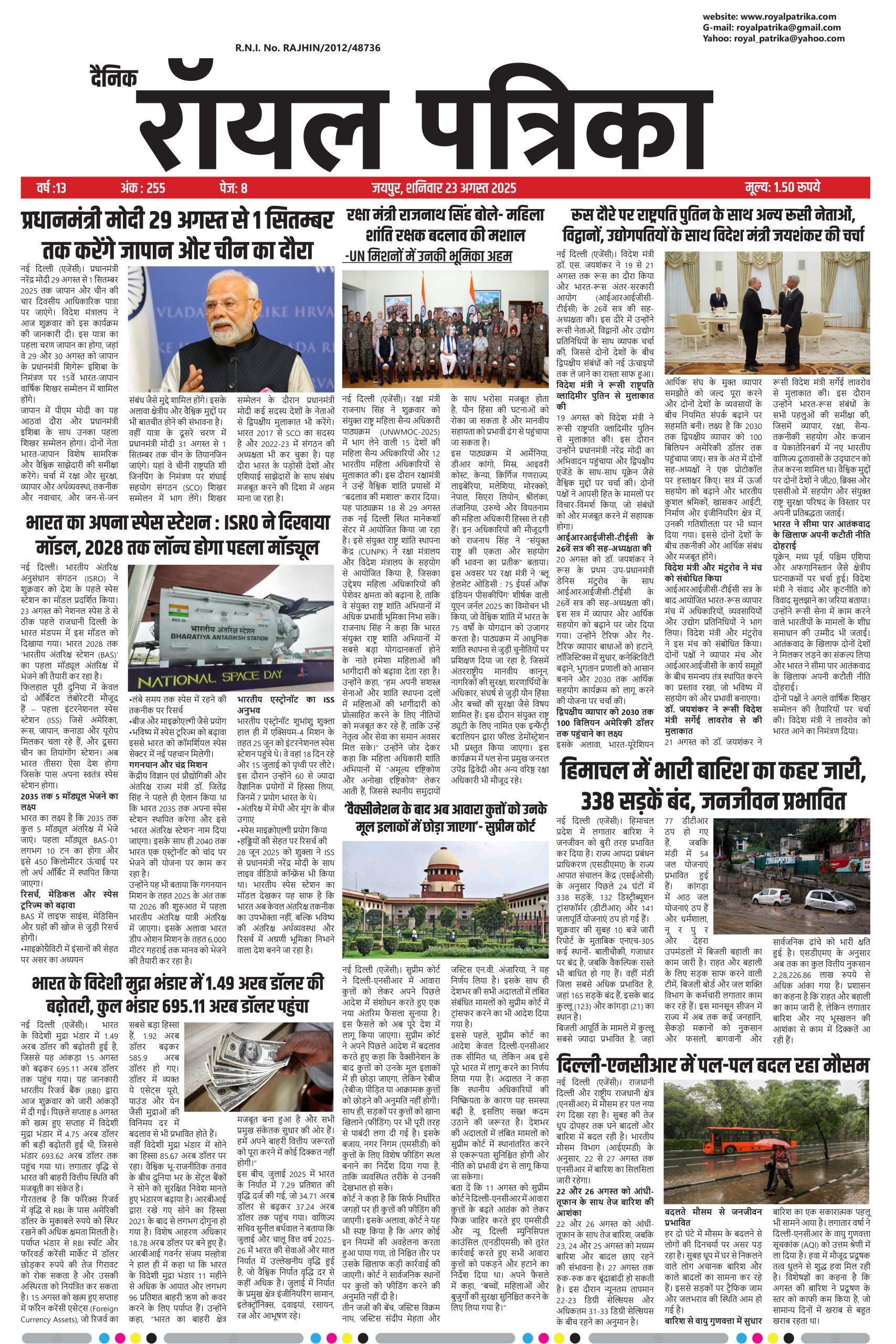 दैनिक रॉयल पत्रिका 24 अगस्त 2025