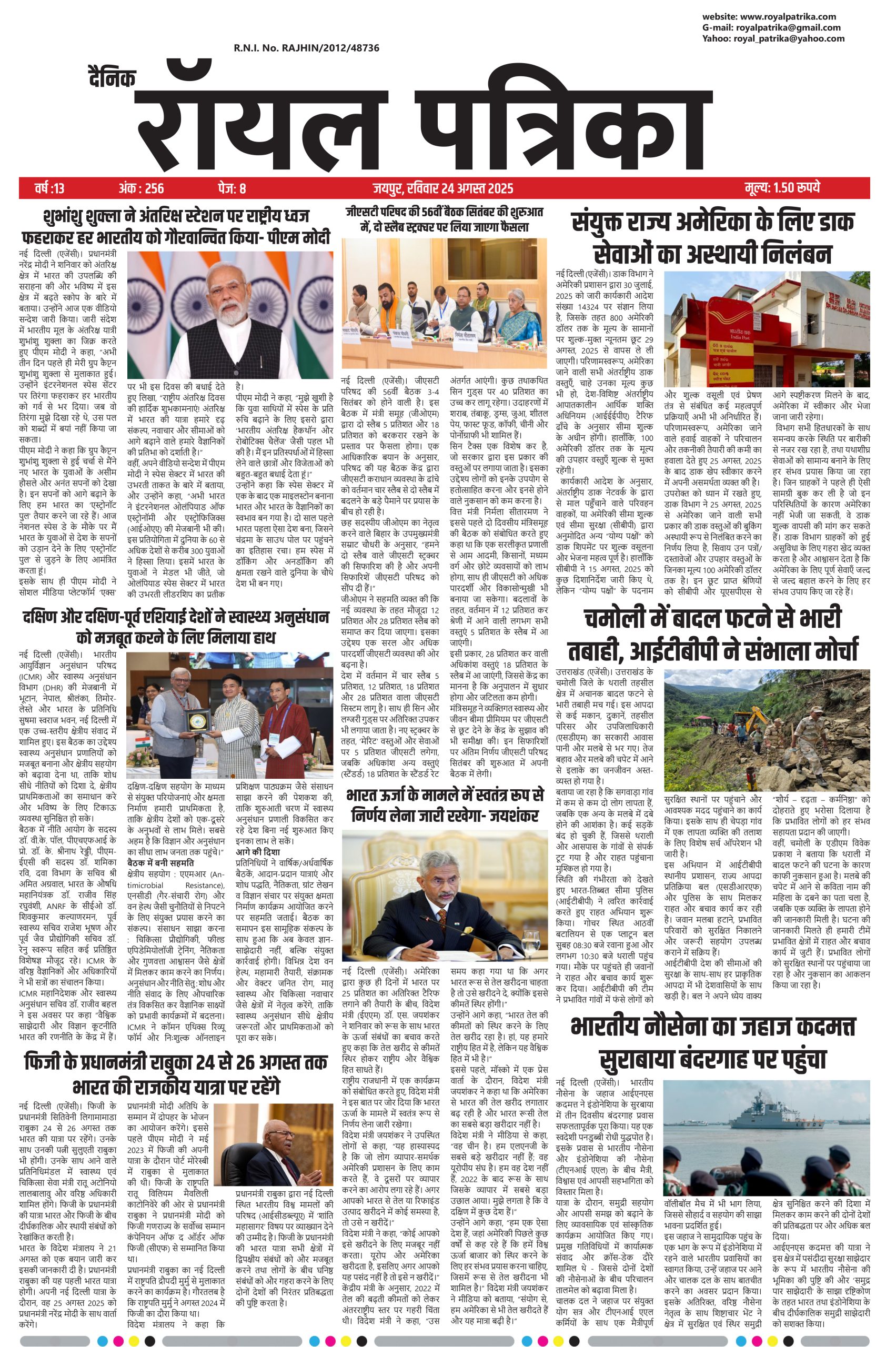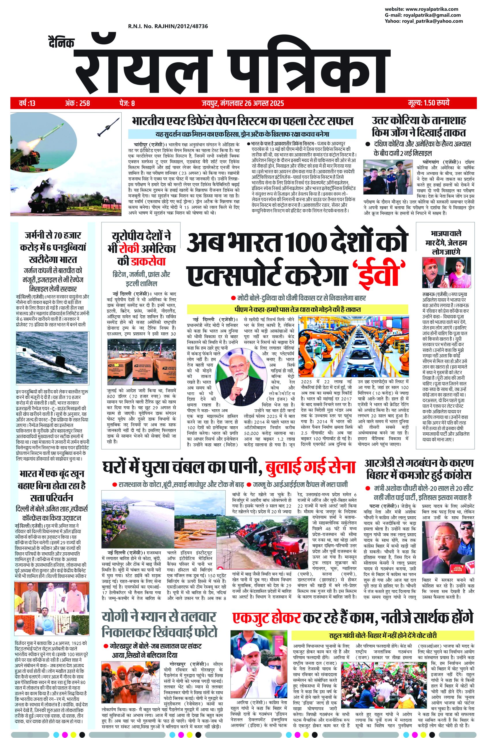 दैनिक रॉयल पत्रिका 26 अगस्त 2025
