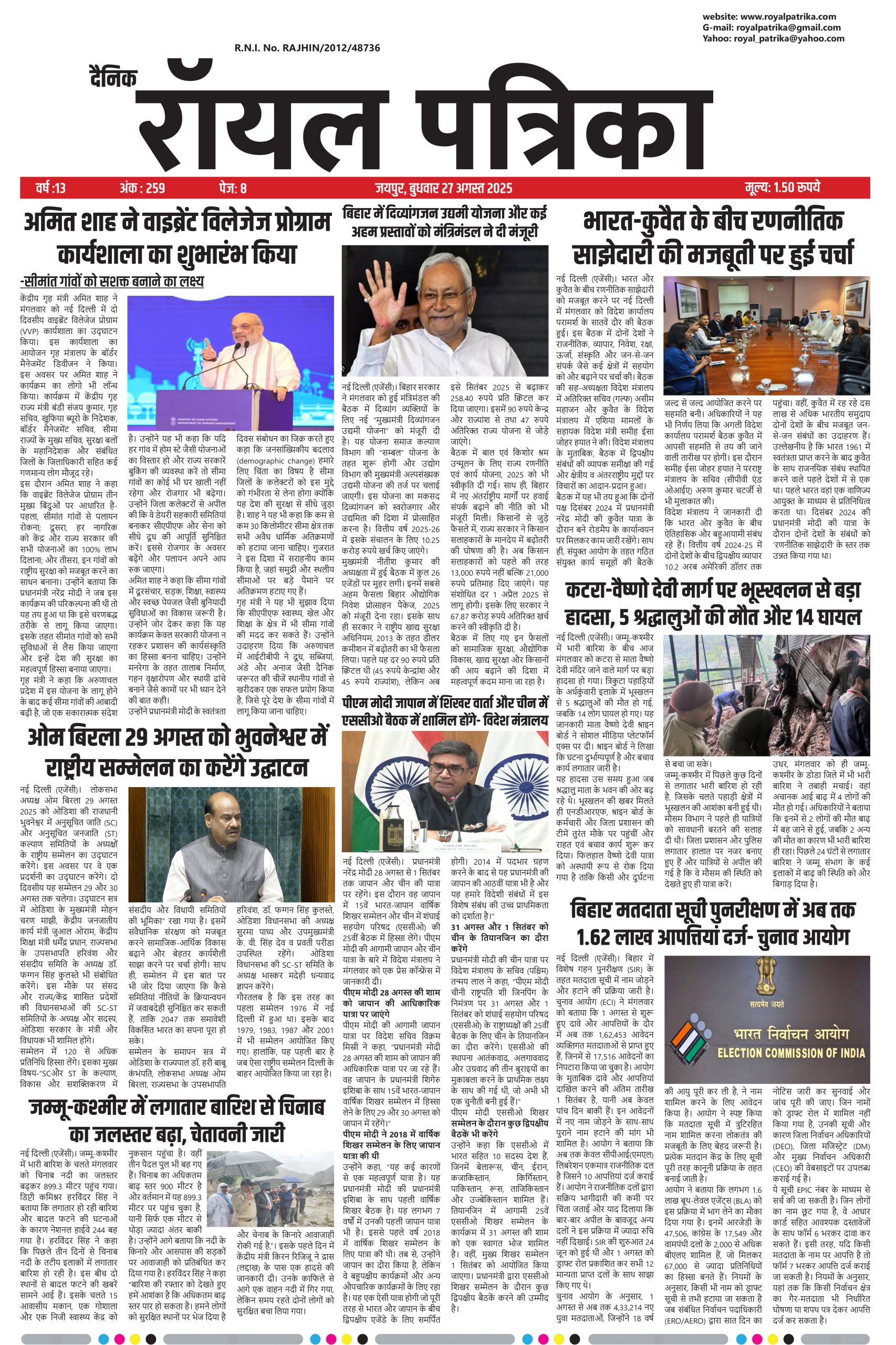 दैनिक रॉयल पत्रिका 27 अगस्त 2025