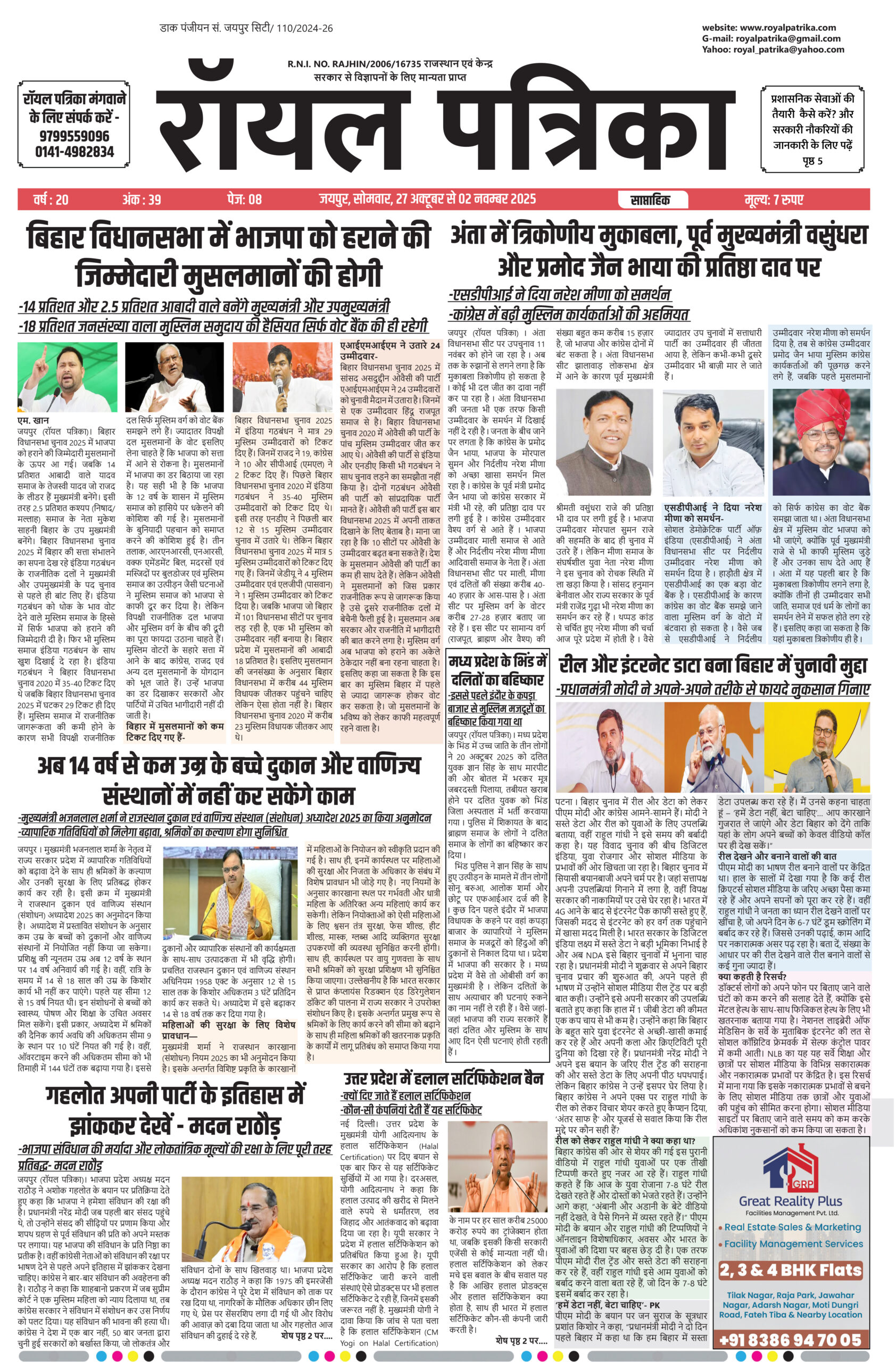साप्ताहिक रॉयल पत्रिका 27 अक्टूबर 2025