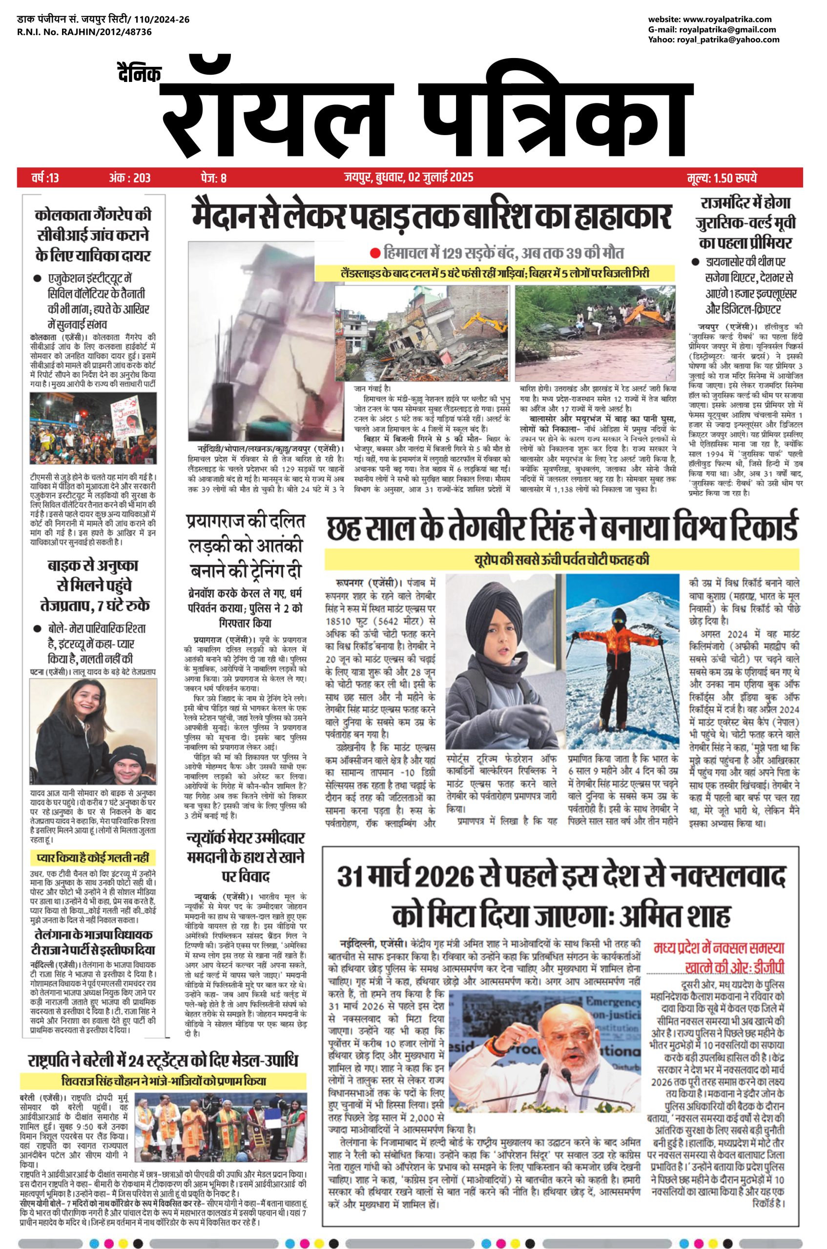 02 जुलाई 2025 दैनिक रॉयल पत्रिका