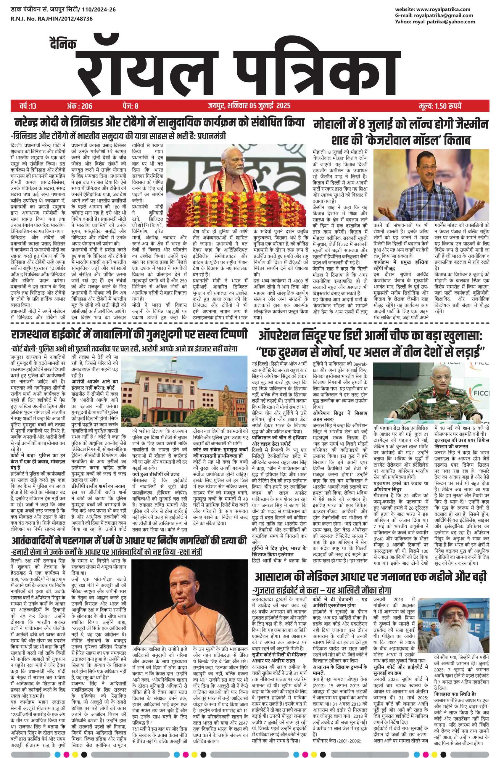 05 जुलाई 2025 दैनिक रॉयल पत्रिका