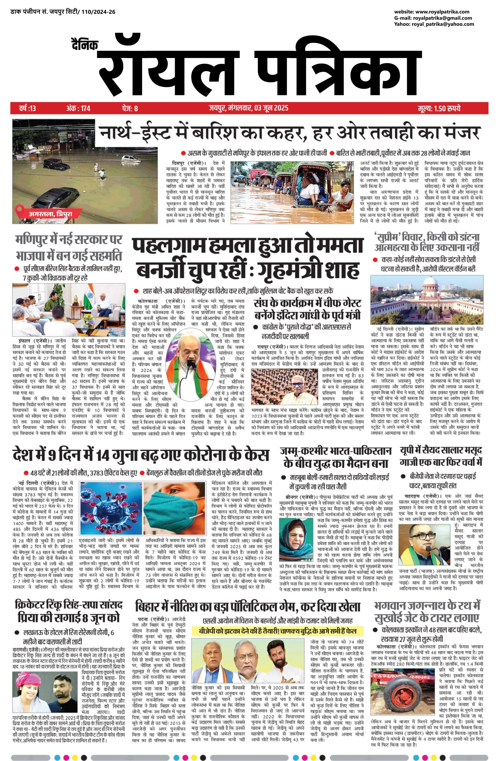 03 जून 2025 दैनिक रॉयल पत्रिका