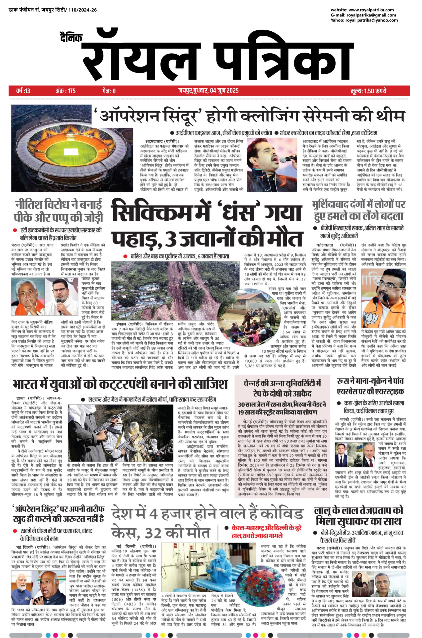 04 जून 2025 दैनिक रॉयल पत्रिका