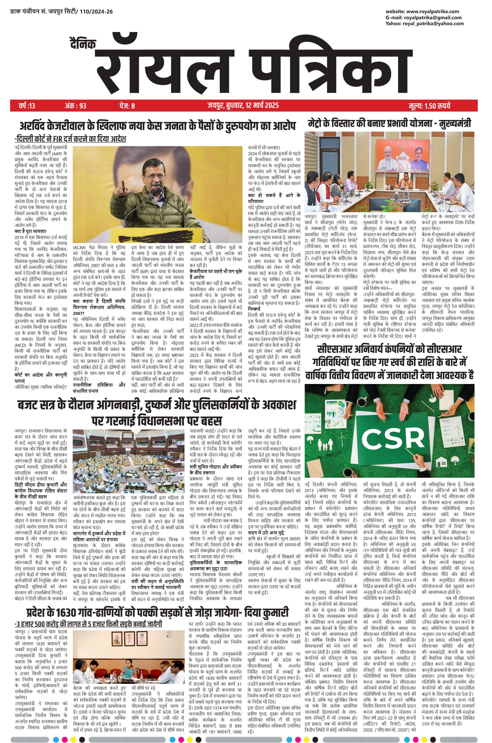 12 मार्च 2025 दैनिक रॉयल पत्रिका