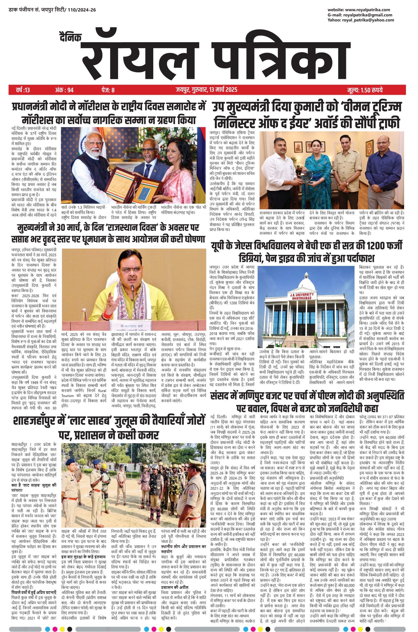13 मार्च 2025 दैनिक रॉयल पत्रिका
