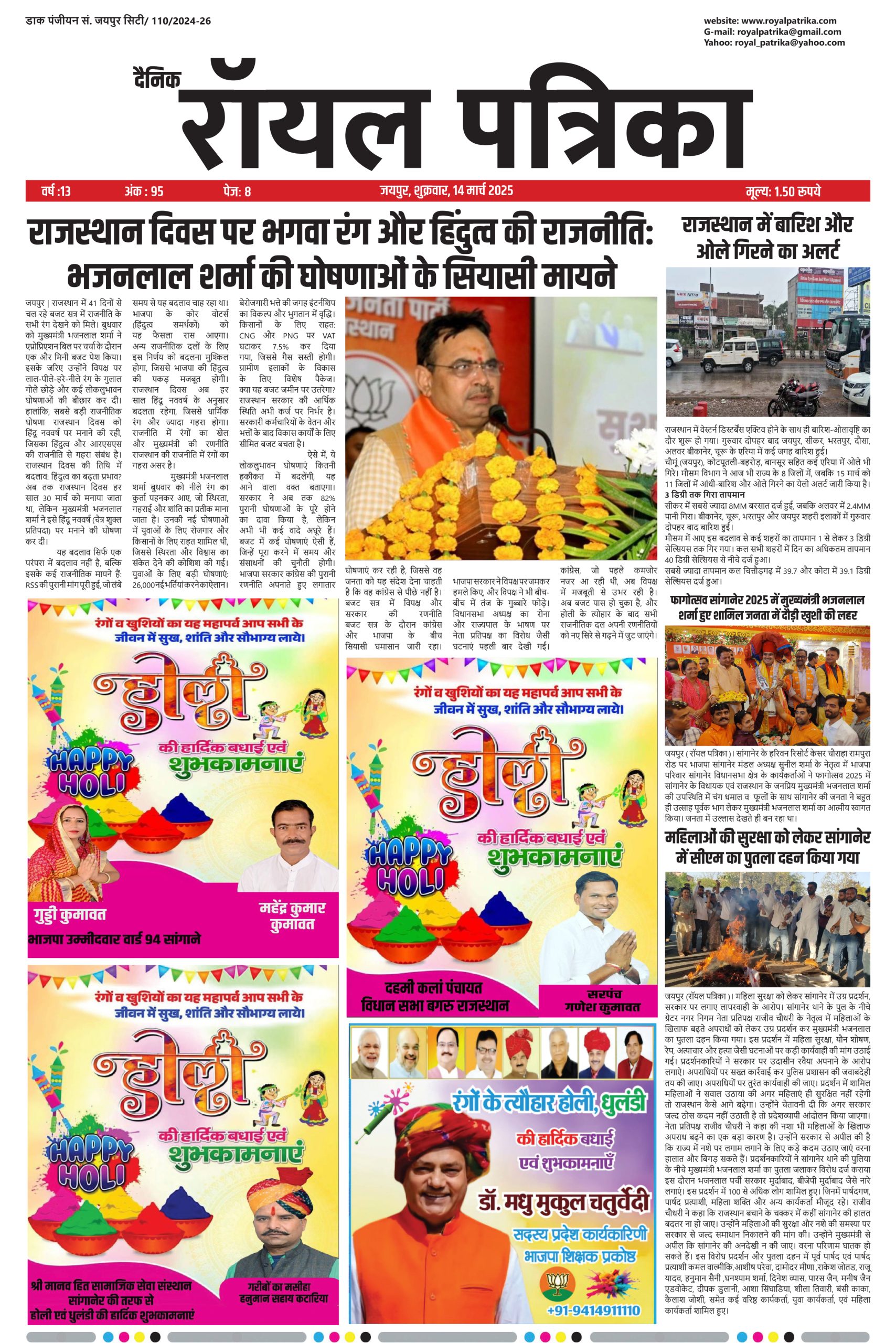 14 मार्च 2025 दैनिक रॉयल पत्रिका