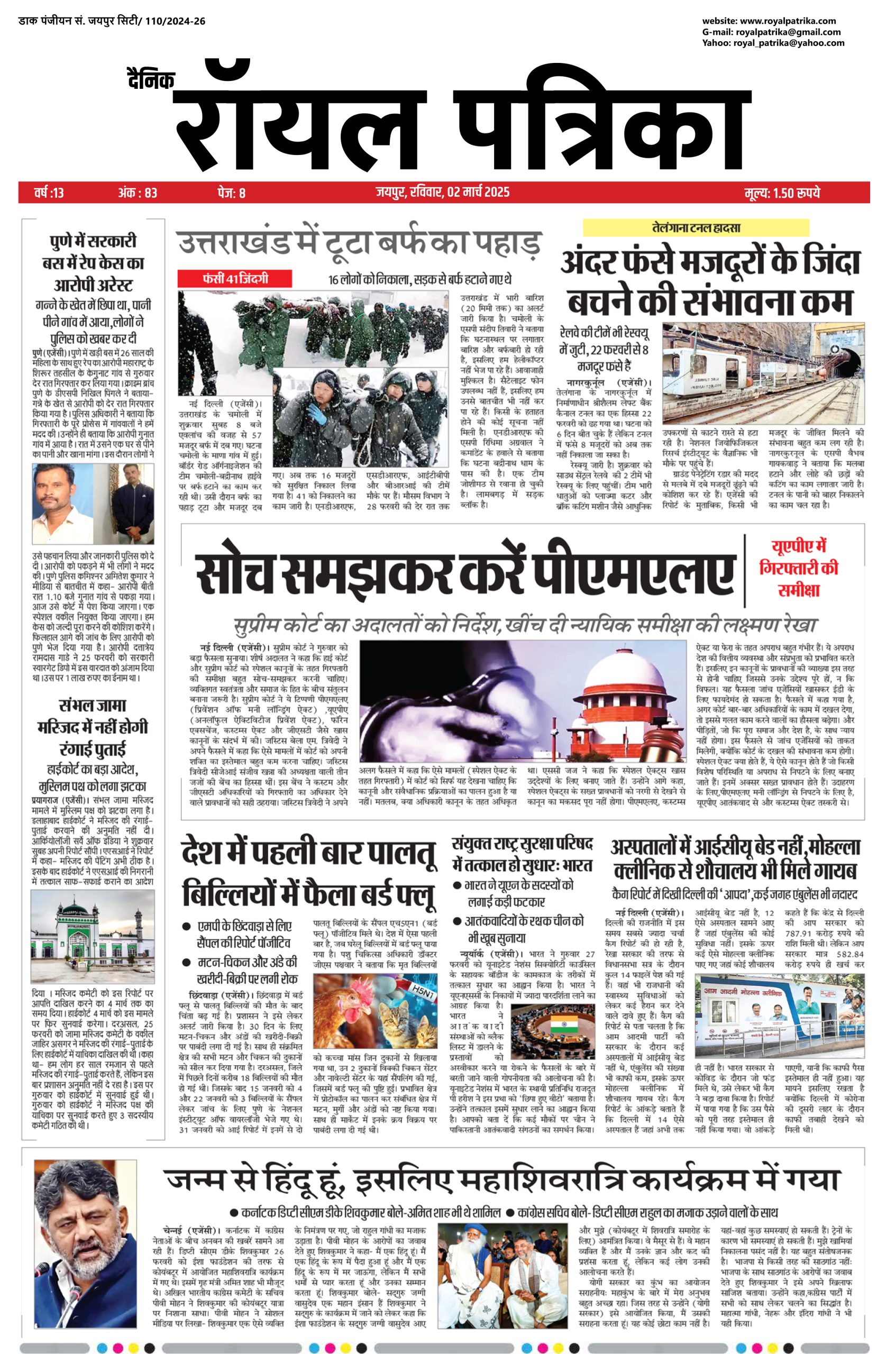 02 मार्च 2025 दैनिक रॉयल पत्रिका