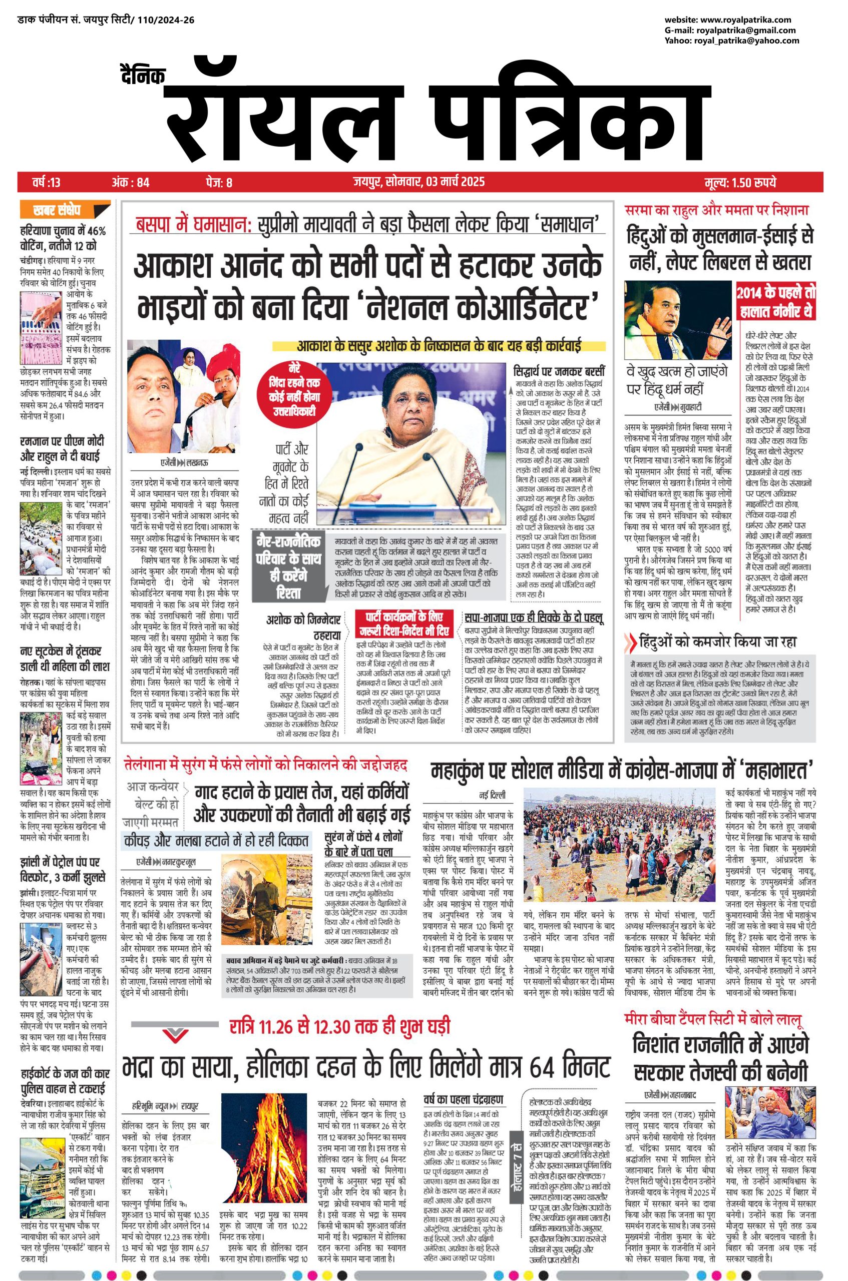 03 मार्च 2025 दैनिक रॉयल पत्रिका