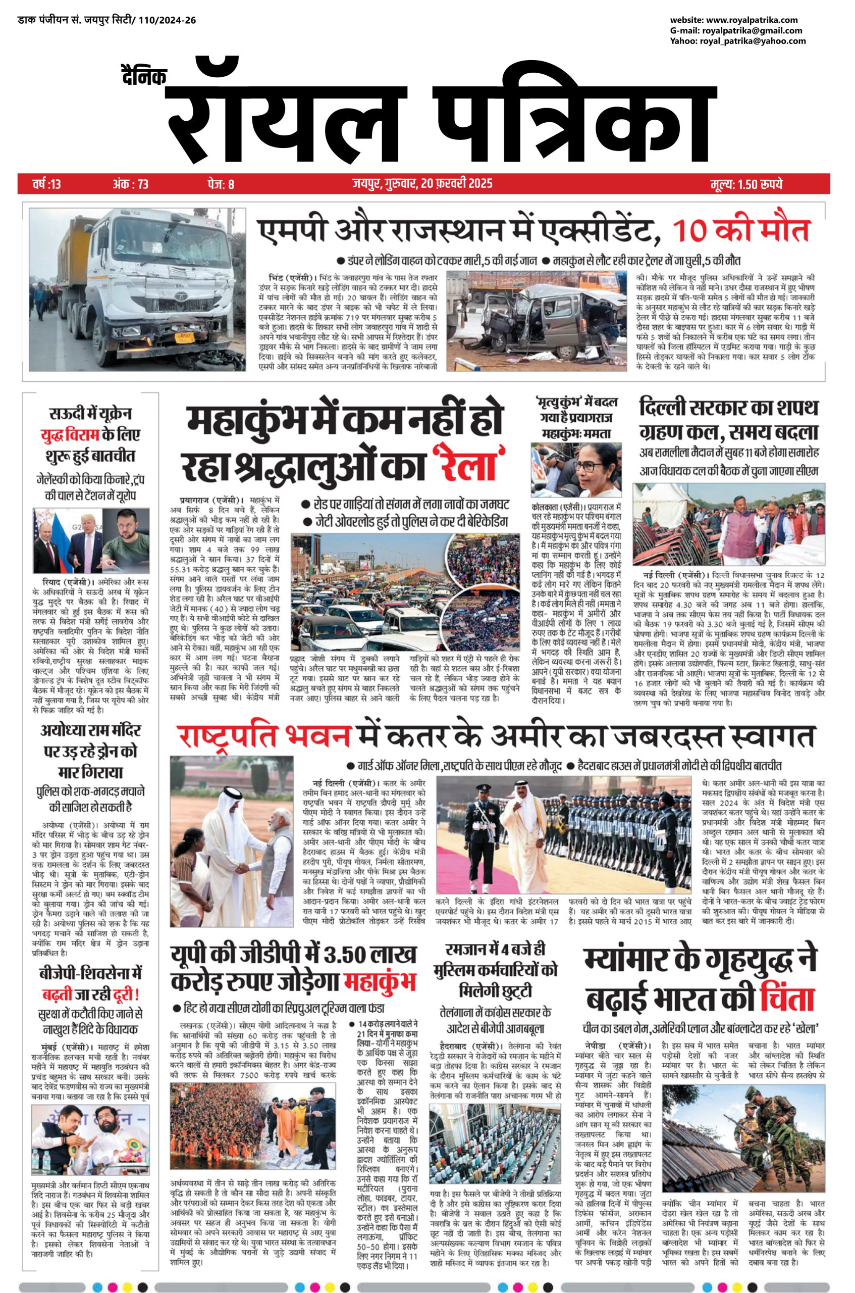 20 फरवरी 2025 दैनिक रॉयल पत्रिका