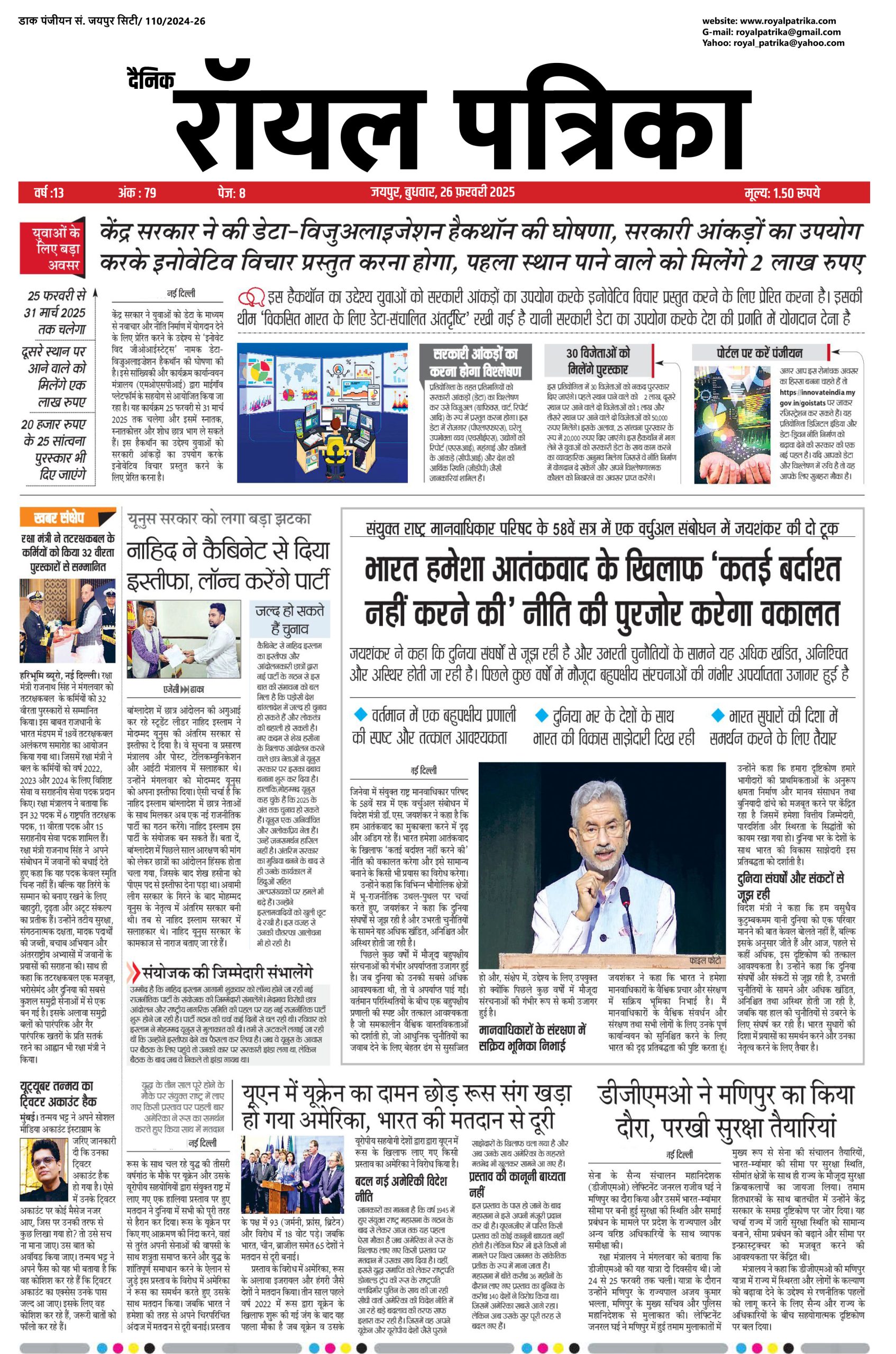 26 फरवरी 2025 दैनिक रॉयल पत्रिका