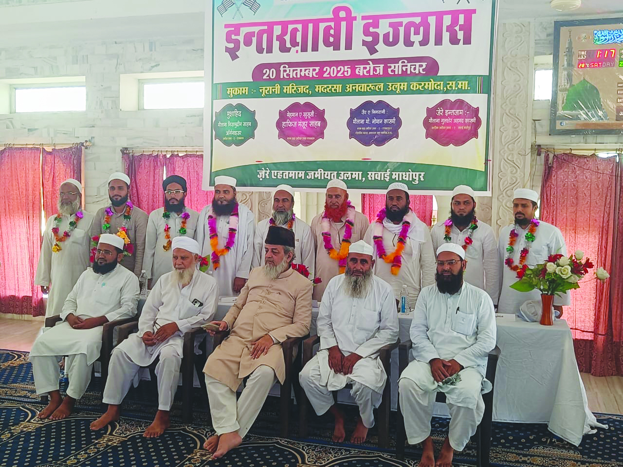 सवाई माधोपुर के मदरसा अनवारूल उलूम करमोदा में जमीयत उलेमा-ए-हिंद की जिला कार्यकारिणी की आम सभा आयोजित हुई। इसमें मौलाना महबूब आलम को दूसरी बार अध्यक्ष, मौलाना मामून रशीद को सेक्रेटरी और मौलाना गुलशेर अहमद क़ासमी को कोषाध्यक्ष चुना गया। सभा में शहर क़ाज़ी निसार उल्लाह सहित जिले के कई इस्लामी विद्वान और प्रतिनिधि मौजूद रहे। कार्यक्रम का समापन दुआ और नसीहत भरे भाषण के साथ हुआ। Read More