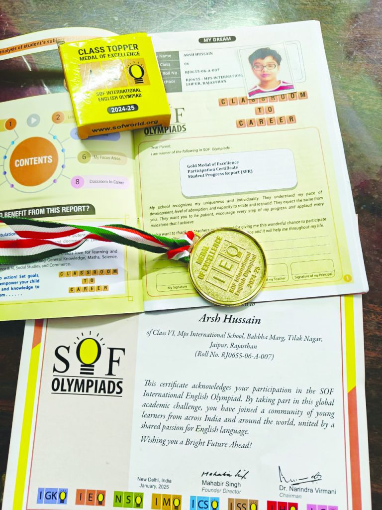 जयपुर, (रॉयल पत्रिका)। एमपीएस इंटरनेशनल स्कूल की कक्षा 6 के छात्र अर्श हुसैन ने एसओएल इंटरनेशनल ओलिंपियाड में गोल्ड मेडल... Read more