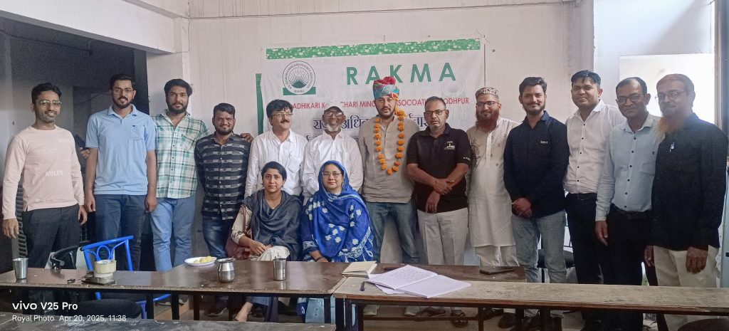 जिला कार्यकारिणी का हुआ गठन जोधपुर, (रॉयल पत्रिका)। राजस्थान अधिकारी कर्मचारी माइनॉरिटी एसोसिएशन (रकमा) जोधपुर की बैठक आज जिलाध्यक्ष मोहम्मद... Read more