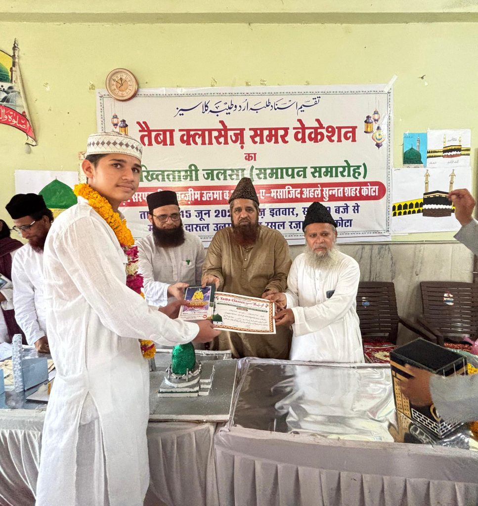कोटा में अल-फ़लाह एजुकेशनल एंड वेलफेयर ट्रस्ट द्वारा 35 दिवसीय दिनियात समर वेकेशन कोर्स सम्पन्न हुआ। 7 स्थानों पर आयोजित इस कोर्स में छात्राओं और महिलाओं को इस्लामी तालीम दी गई। समापन समारोह में 300 बालिकाओं को सर्टिफिकेट और गिफ्ट देकर सम्मानित किया गया। Read More