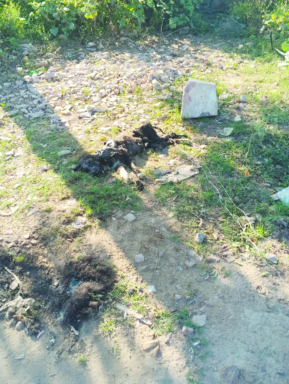 सड़क किनारे मरे जानवर डाले और पत्थर डालकर अतिक्रमण किया