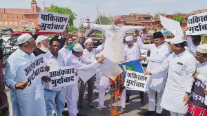 वहीं, जयपुर के बड़ी चौपड़ पर भाजपा अल्पसंख्यक मोर्चा ने प्रदेश अध्यक्ष हमीद खान मेवाती के नेतृत्व में आतंकियों का पुतला फूंका और पाकिस्तान के झंडे को जलाकर कड़ा विरोध जताया। प्रदर्शन में शामिल कार्यकर्ताओं ने शहीदों को श्रद्धांजलि दी और ‘भारत जिंदाबाद’, ‘पाकिस्तान मुर्दाबाद’ जैसे नारे लगाते हुए आतंकवाद के खिलाफ सख्त कार्रवाई की मांग की। हमीद खान मेवाती ने कहा, “भारत में हिंदू-मुस्लिम एकता ही हमारी असली ताकत है, और पूरा मुस्लिम समाज आतंकवाद के खिलाफ कंधे से कंधा मिलाकर खड़ा है। प्रधानमंत्री मोदी द्वारा पाकिस्तान को कड़ा संदेश देना इस लड़ाई में एक निर्णायक कदम है।” उन्होंने बताया कि जुम्मे की नमाज़ के बाद शहर की मस्जिदों में भी आतंकवाद के खिलाफ विशेष दुआ की गई और विरोध दर्ज कराया गया। इस विरोध प्रदर्शन में मोर्चा के राष्ट्रीय उपाध्यक्ष हुसैन खान, पूर्व प्रदेश अध्यक्ष एम. सादिक खान, रेशमा हुसैन, फिरोज़ खान, हिदायत खान, अब्दुल अज़ीज़, परवेज़ खान, मजीद पठान सहित बड़ी संख्या में पदाधिकारी एवं कार्यकर्ता मौजूद रहे। इन दोनों कार्यक्रमों ने यह साफ कर दिया कि आतंकवाद के खिलाफ देश का मुस्लिम समाज पूरी मजबूती से खड़ा है। चाहे मंच हो या सड़क, हर जगह से यही पैगाम गया कि भारत में अमन, एकता और भाईचारा ही सर्वोपरि है।