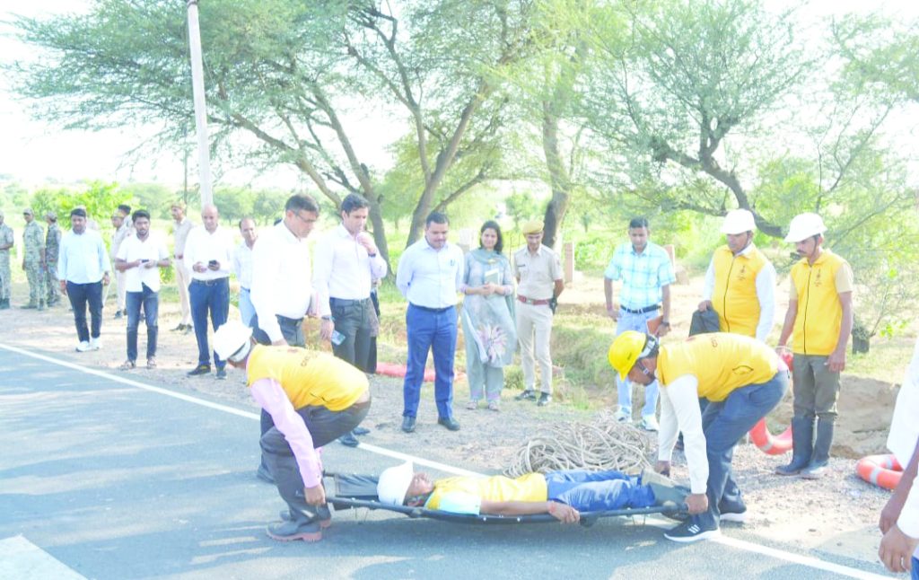 जिला मुख्यालय के निकटवर्ती गाजसर के पास तारानगर तिराहे पर सड़क हादसे का मॉक ड्रिल
